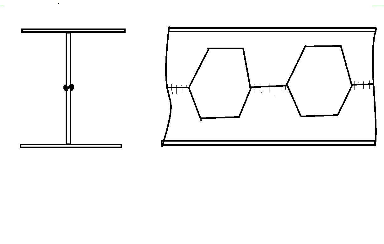Думаю, как смоделировать такую балку в Лира-САПР. Есть мысль сделать из отдельных элементов, по типу фермы, но смущает сварной шов между верхней и нижней половиной, получается, что посреди этого вертикального элемента надо будет делать шарнир? Будет ли это все вообще работать? Еще поступило предложение в конструкторе сечений нарисовать сечение этого двутавра по месту отверстия и посчитать на всю длину. Есть какие-нибудь мысли по этому поводу? Может кто-то сталкивался с такими?