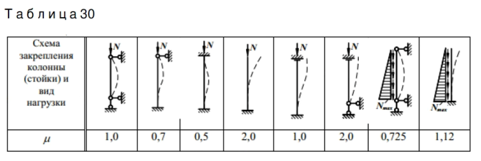 Все очевидно, вашу преподавателю не нужна была таблица 30, она работает только для одиночно стоящих стержней. Подробнее эту тему раскрвает расчетчик в видео