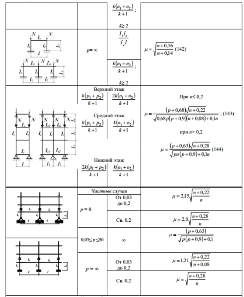 Если коротко, то опускаемся немного ниже и смотрим таблицу 31, ищем свой вариант и считаем коэфициент для каждой колонны. Ну, конечно, некоторые будут одинаковые, такие как самые крайние, где приходят только две балки. К сожелению Лира не считает сама, но я пользуюсь софтом SСADа, там можно посчитать практически автоматически