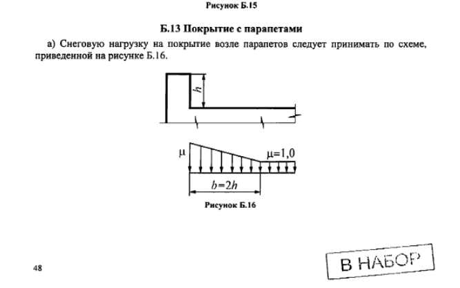 Тогда я бы взял схему покрытия с парапетом, скраю берем мю = 1, а в центре высчитавываем по формуле