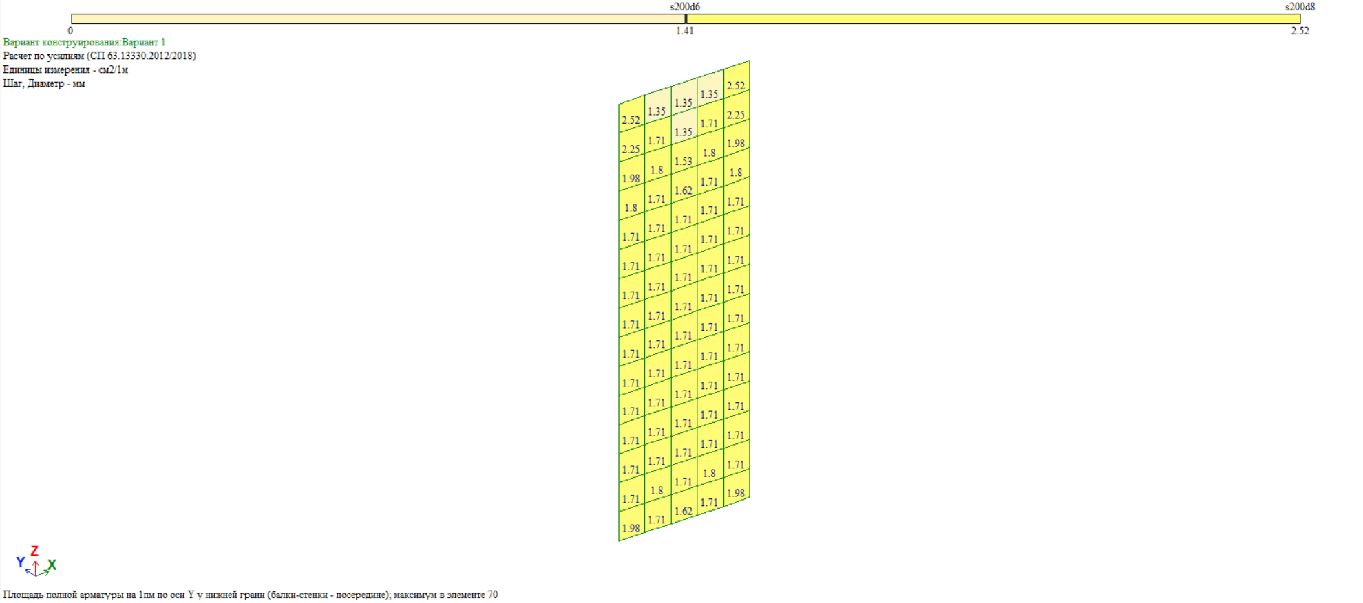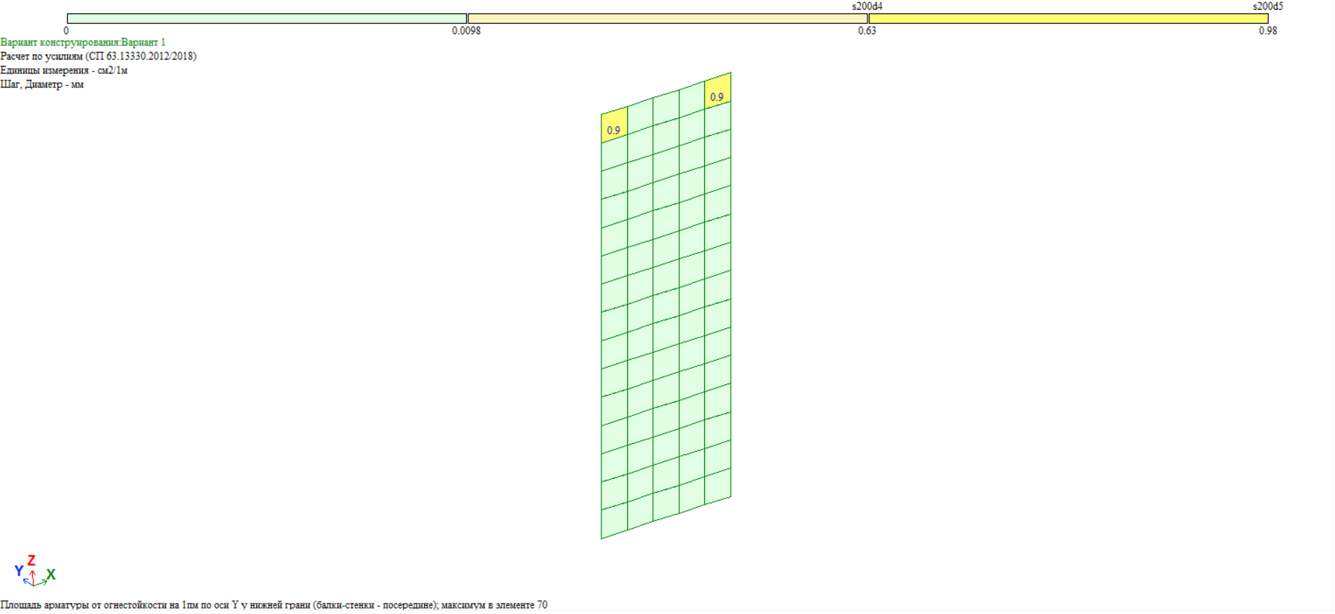 Результаты расчета по ЛИРА-САПР: требуется арматура 4ш200 по огнестойкости, и общая 8ш200 (огневое воздействие с 2-х сторон)