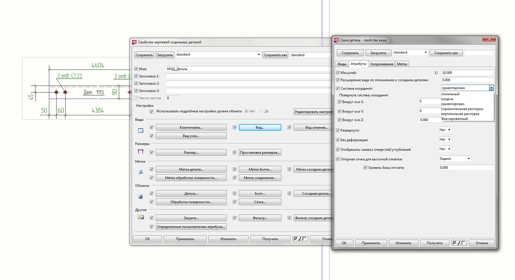 Ориентирование деталей, сборок на чертеже Tekla Structures