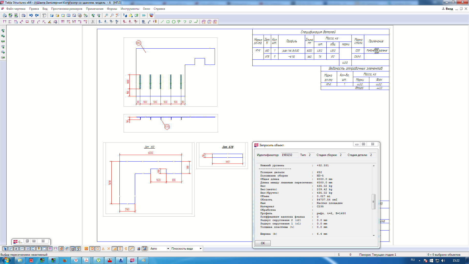 В модели создан настил сложной формы из рифленого листа. Настил создан с помощью инструмента "Балка", вырезы создавались вырезанием многоугольником. В спецификациях на сборке масса детали считается БРУТТО, т.е. без вырезов, хотя в свойствах проекта указанно NETTO.
