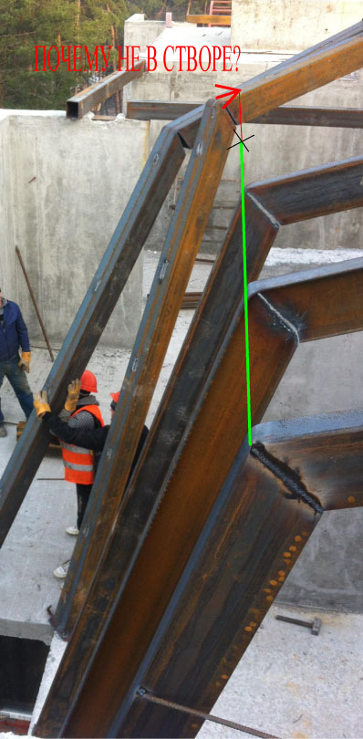 Но ведь при Вашем подходе наверху нет даже средств измерения и контроля, т.е. все на шару. Не говоря о выходе согнутого и разогретого металла балок за пределы текучести. При изготовлении как я предложил, легко контролируется при изготовлении размер гипотенузы, отвечающий за точность изделия и для того, чтобы оно при транспортировке и монтаже "не разлазилось", ставится временная затяжка, которая демонтируется после монтажа каркаса. Так вот нужно все это делать. А тот подход- от привычки все делать "на коленях".DrBianko писал(а):Да понял я все. Просто так, если в балке угол хоть на 1 градус отличается от проектного, на большом расстоянии уже проблема, и ничего не поделать.