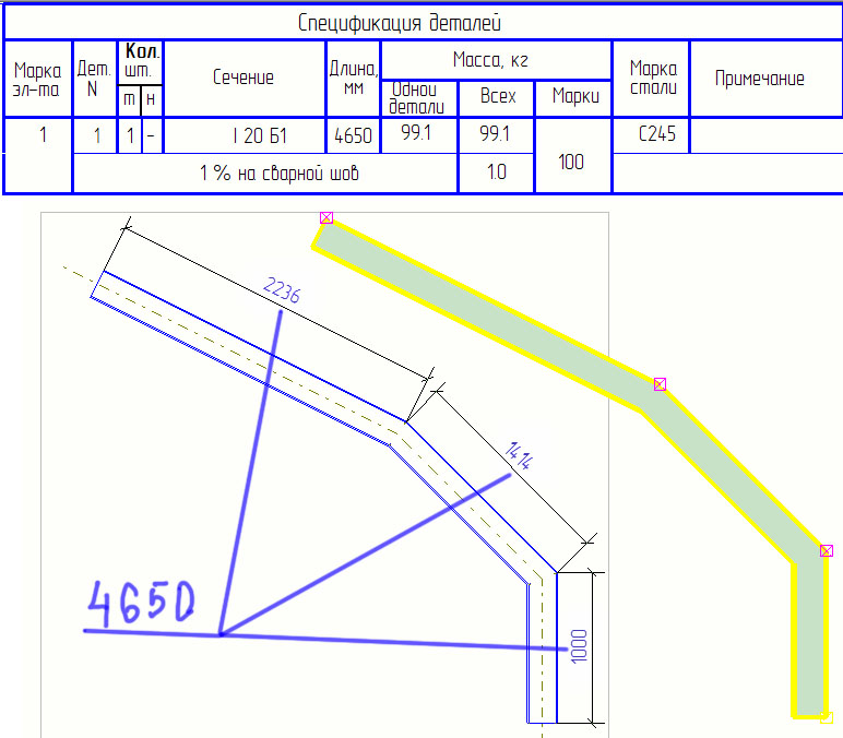 Cкидываю модель. Косоуры из составных балок разрез по оси 4! Считает при любом раскладе по средней линии. Но эта не та длина! Ну прям вот такая ерунда, а сколько, извиняюсь, возни!