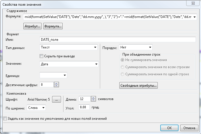 формула - mid(format(GetValue("DATE"),"Date","dd.mm.yyyy", ),"3","2")+"."+mid(format(GetValue("DATE"),"Date","dd.mm.yyyy", ),"6","4")