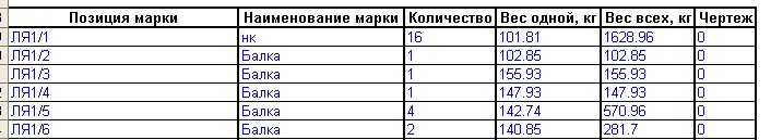 Помогите поправить таблицу "A_Список марок.xls.rpt" чтоб вес отправочной марки совпадал с чертежом.