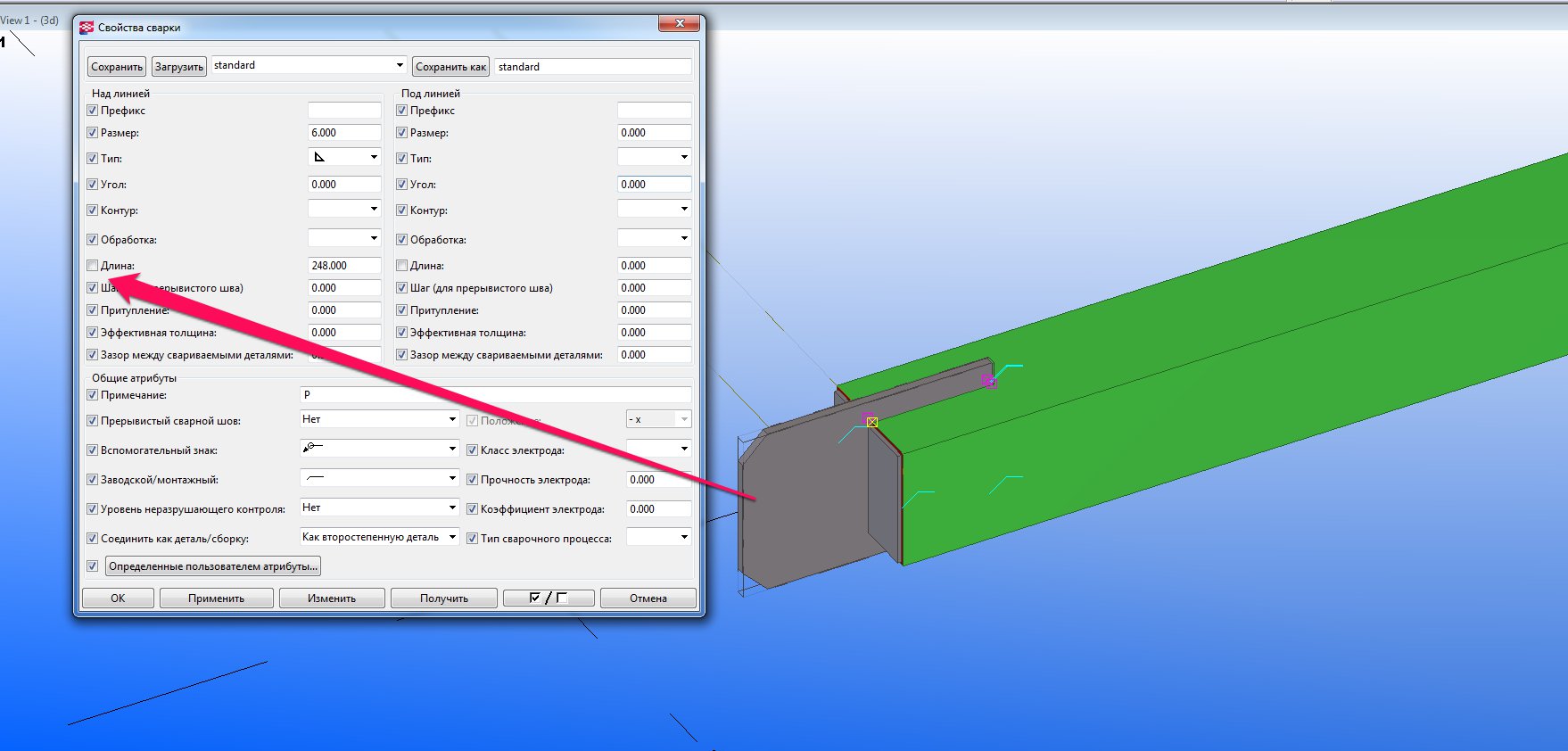 Пытался вбить руками все данные по сварному шву, после кнопки изменить все равно пропадает галочка длина сварного шва, как я понял дело в ней
