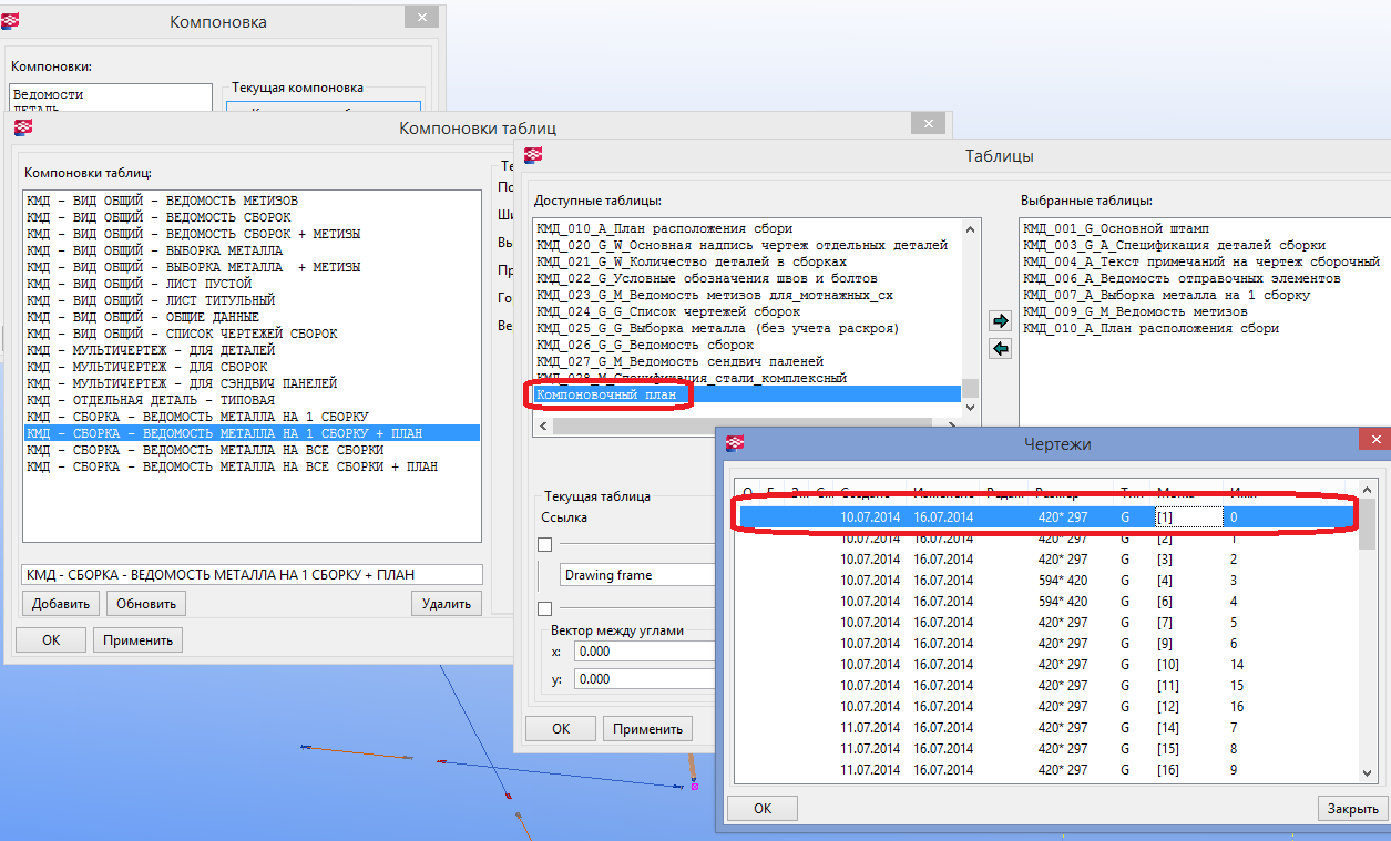 Отображение сборки на плане в Tekla Structures