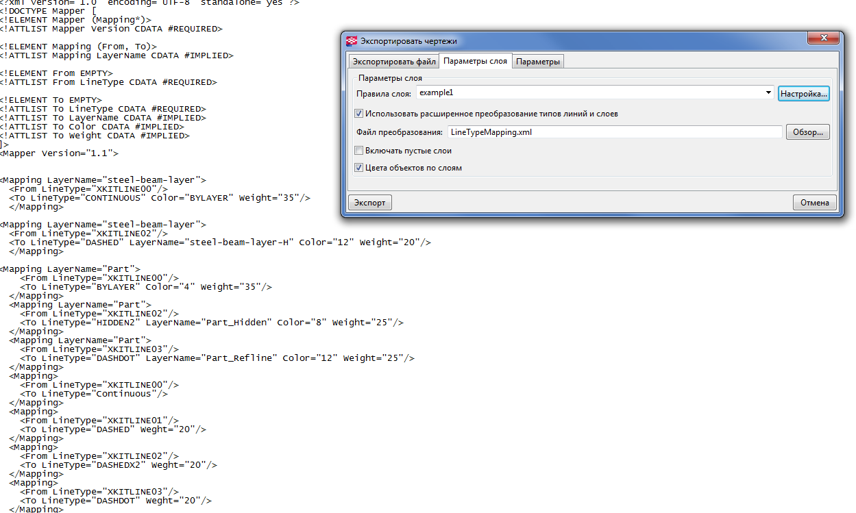 Вот примерYuzer писал(а):Путь к тому файлу преобразования указан?Светлана писал(а):Галочка стоит, цвета экспортируются, а веса-нет