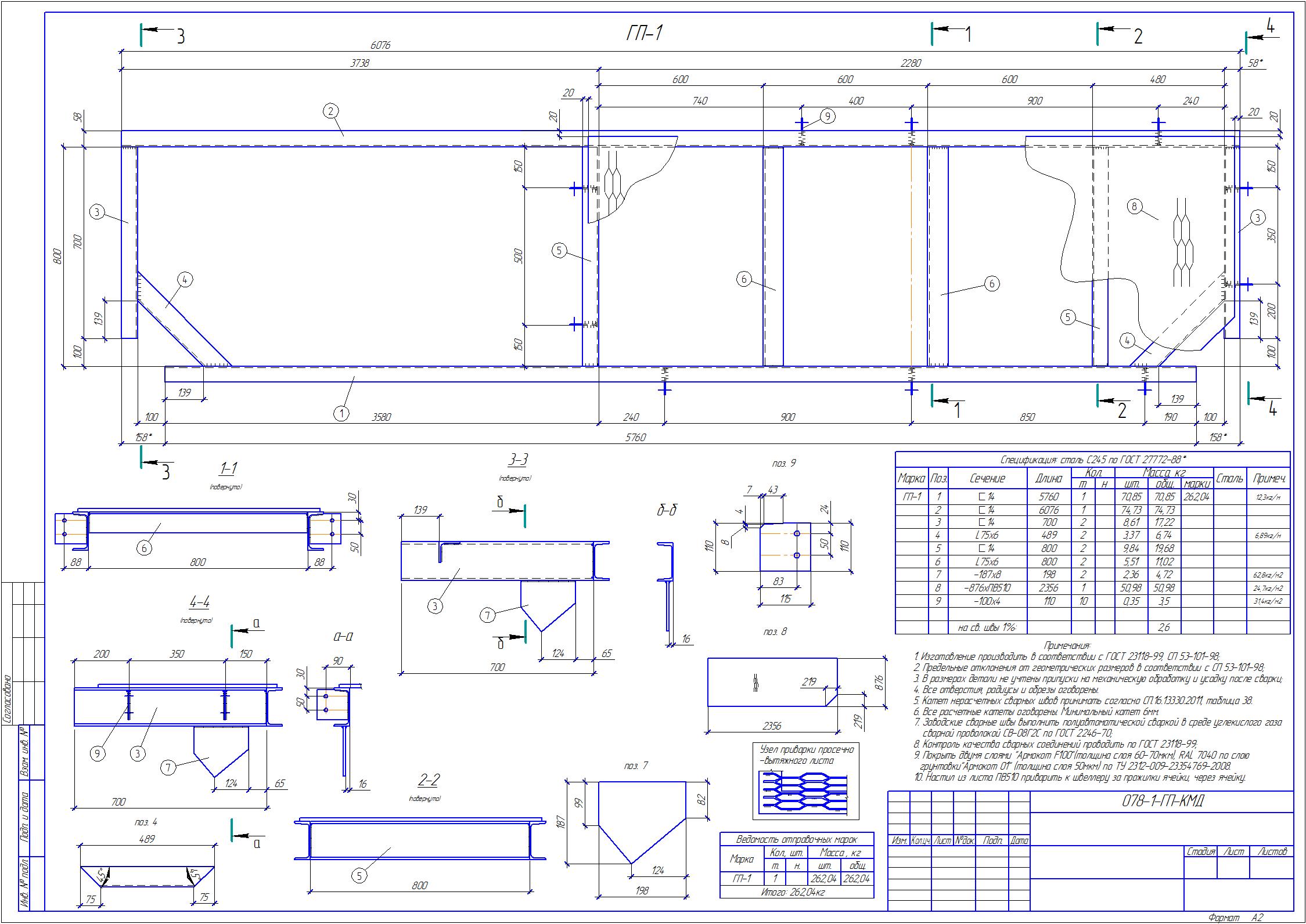 AutoCAD вероятноDenis писал(а):А каким инструментом вы сделали такой вырез ПВ (поз.8) ?fillbag писал(а):Добрый день! Подскажите как оформить чертеж площадки с покрытием - лист просечно-вытяжной. Нужно показать вырез как в примере и направление листа.