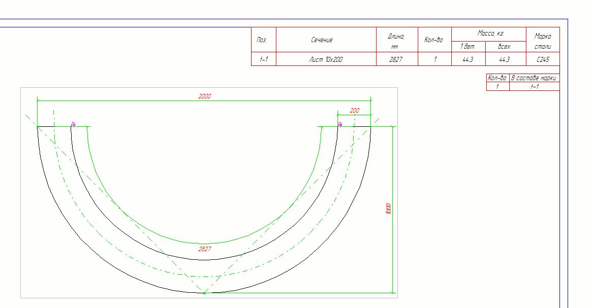 Ради интереса построил по указанным радиусам- там на 4 метрах от хорды до кривой максимум 6мм получается. Согласовал бы уход от радиуса для упрощения всего. Другое дело- размер заготовки в спецификации 4112Х4198 не смущает?[/quotealstey писал(а):Светлана писал(а):Здравствуйте! Подскажите, пожалуйста, как привести габариты детали в спецификации в человеческий вид.