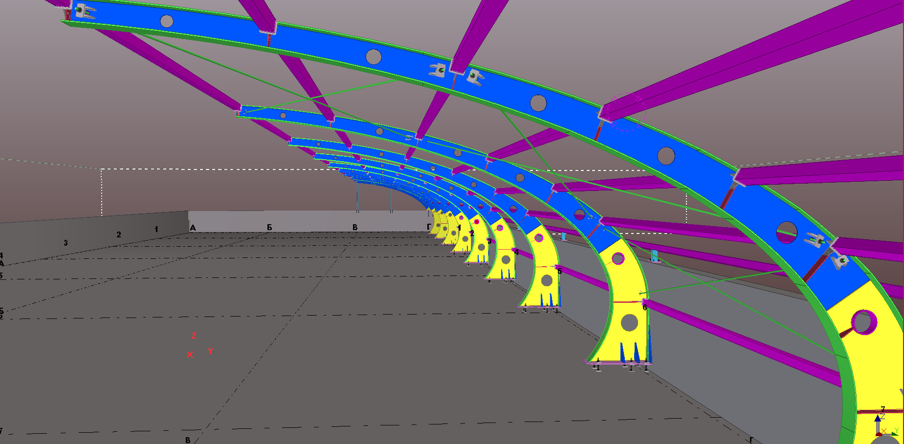 Арочные балки идут по радиусуYuzer писал(а):Поиграйтесь с системой координат в свойствах вида.