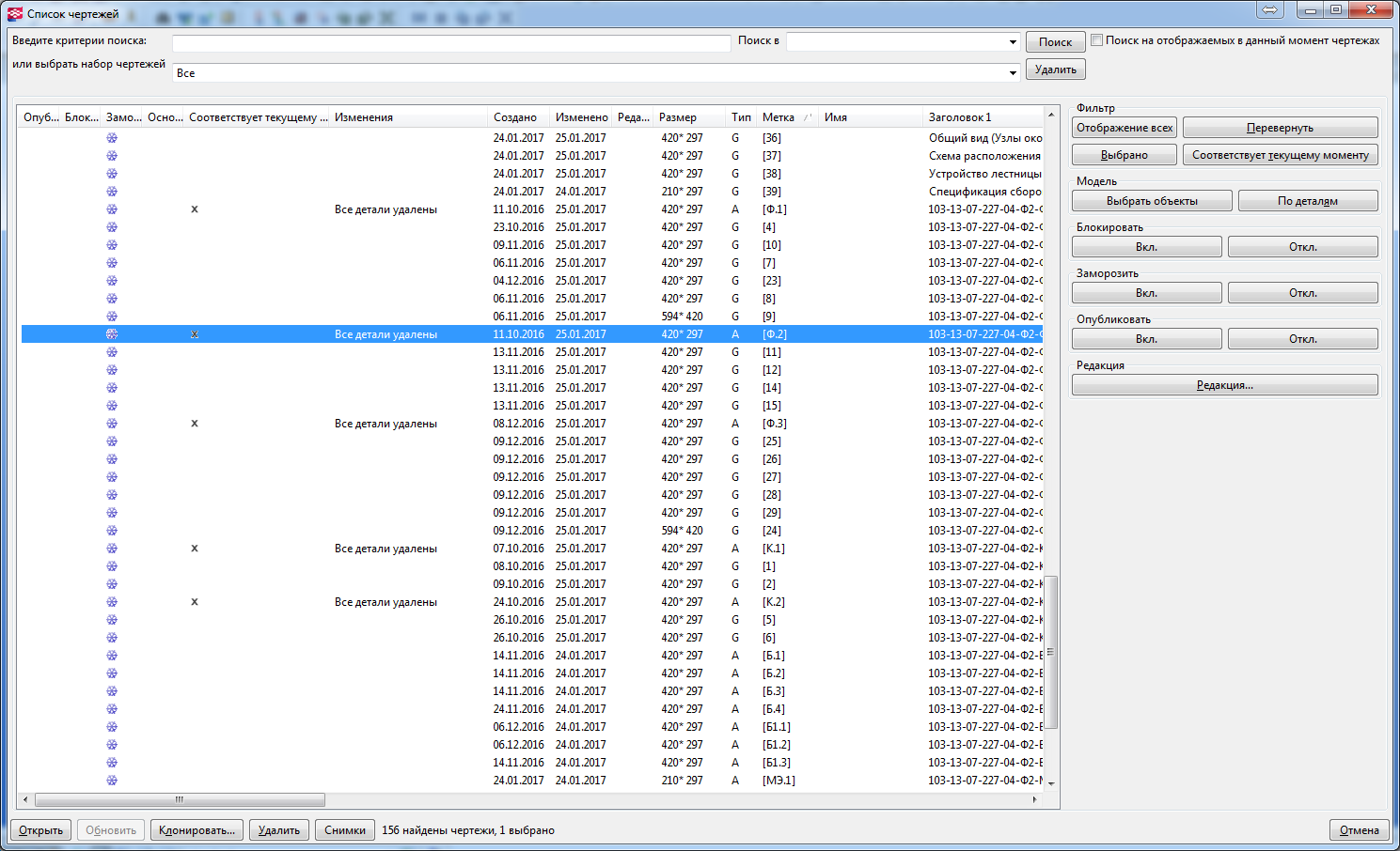 Re: Восстановление статуса чертежей