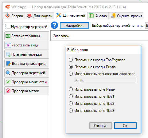 Re: Плагины - Нумератор чертежей и Список чертежей Tekla Structures