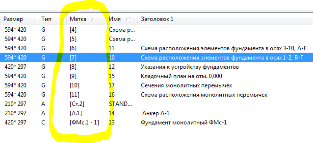 Логичнее изменить шаблон штампа, чтобы использовать Имя, Заголовок 1, Заголовок 2, Заголовок 3 для его заполнения, чтобы ориентироваться в самом списке чертежей. Метку изменить нельзя. Сортировать нужно по номерам страниц, номера страниц в russia также заполняются через пользовательские