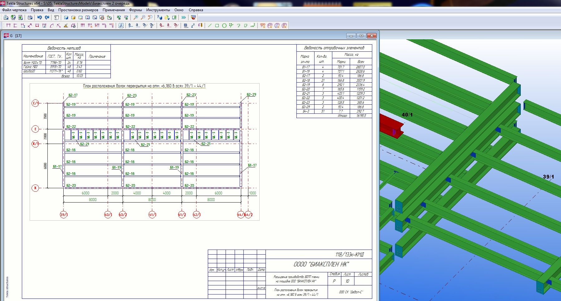 Проект делаться полностью в Tekla Structures. Елси вы дорабатываете чертежи в автокаде, то что-то вы делаете не так. В текле возможно сделать все. Никаких доработок в сторонних программах не требуется.Константин писал(а):пока суть та дело, полиста мануалы и понял что не той сваркой варил, поэтому спецификация и полетела. сегодня переделаю.