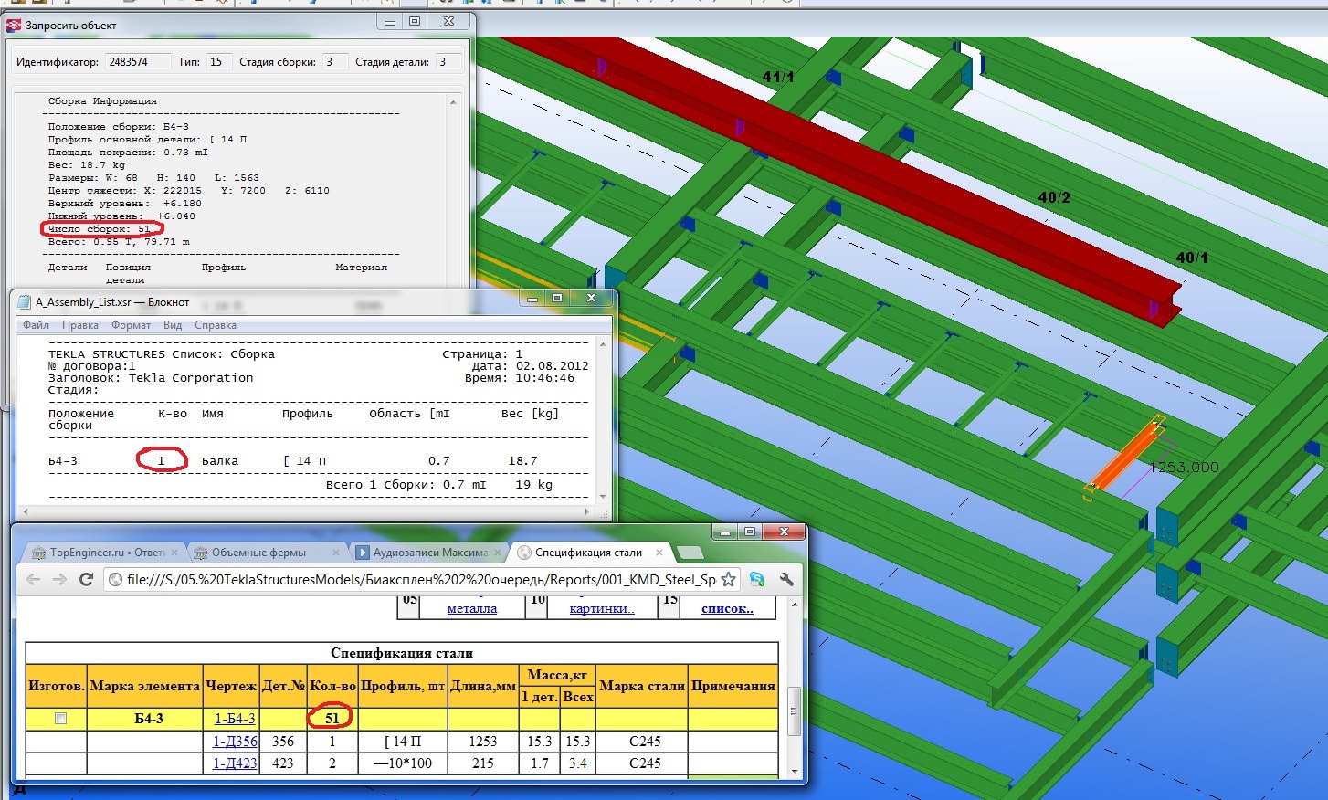 С отчетами тоже путаница. Выделяю одну Балку Б4-3 и делаю отчет по выбранному. Если делаю по дефолтному шаблону A_Assembly_List все считается правильно - 1шт., а если по 001_KMD_Steel_Specification_(HTML) - в отчете выводятся все 51.