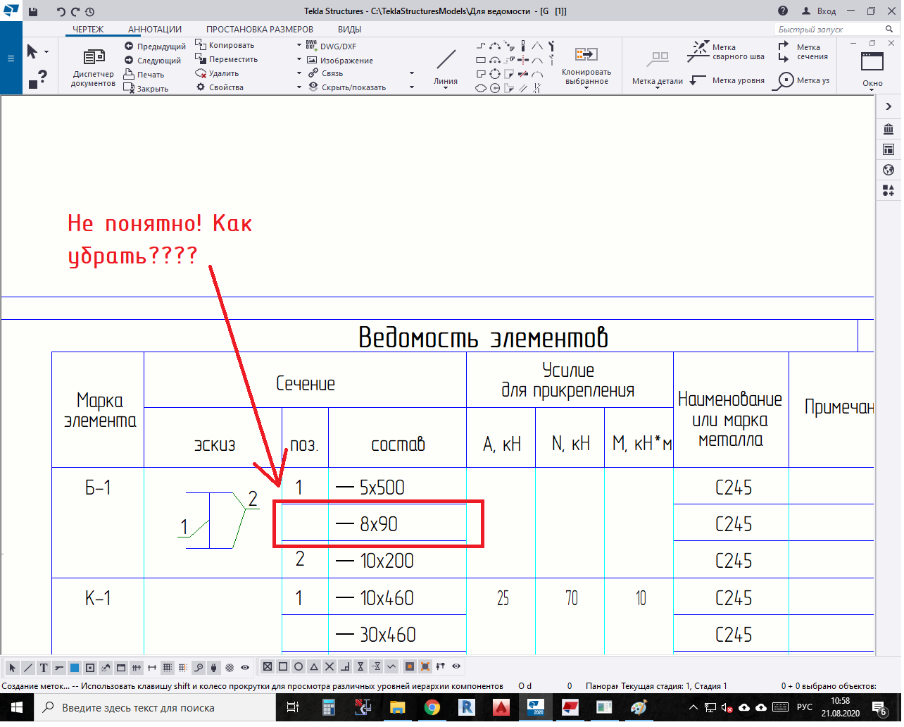 Здравствуйте! Я хочу сделать ведомость элементов в Текле, где есть сварной двутавр. И для ведомости мне нужно указать позиции только стенки и полок. Но при выводе в ведомости показываються с номерами позиции стенка и полки двутавра, и дополнительно показан ребро жесткости, который мне не нужен. Как мне убрать из ведомости этот не нужный элемент?