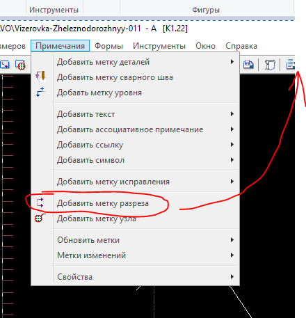 подскажите пожалуйста как добавить команду "добавить метку разреза" в основную панель инструментов, чтоб не нажимать в начале -примечания - а потом уже иконку. Так время уходит .