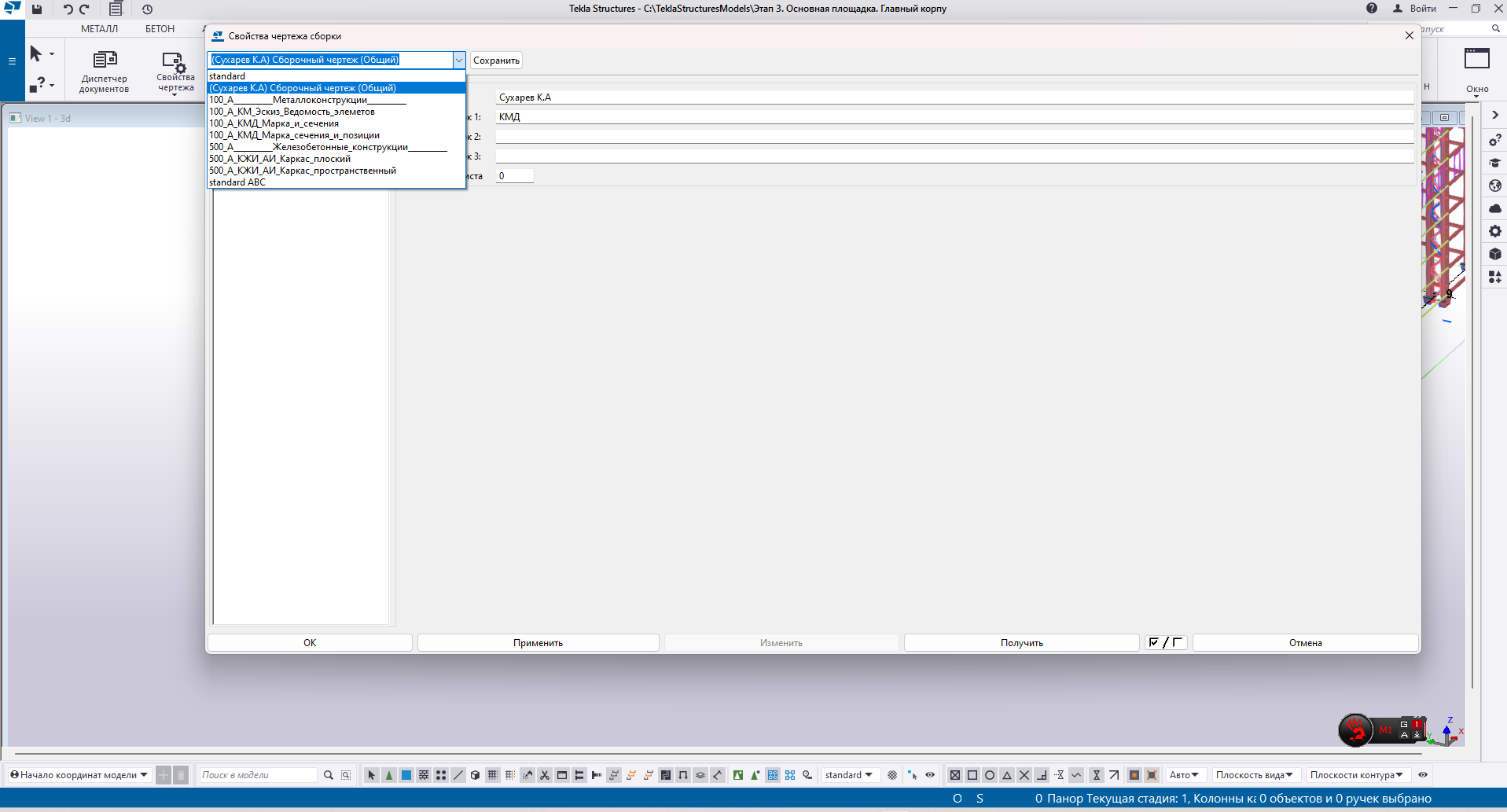 Ребят подскажите пожалуйста не так давно начал делать КМД и работать в Tekla. На предприятие большинство проектов в многопользовательской модели, можно ли как то сохранить шаблон сборочного чертежа, что бы когда заново заходишь в модель не сбрасывалось на шаблон standard? Для примера подкрепил скриншот. То есть я хочу добиться что когда запускаю теклу сразу был мой шаблон, а не standard или как вариант, сделать так что бы у меня считывал настройки standard с самой папки Tekla, а не с папки attributes в модели