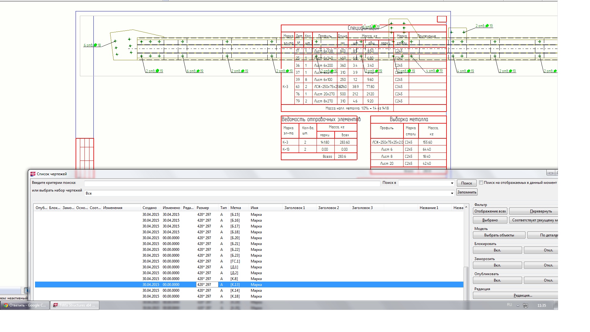 Выбрал все объекты - Чертежи и отчеты - Чертежи отдельных деталей.