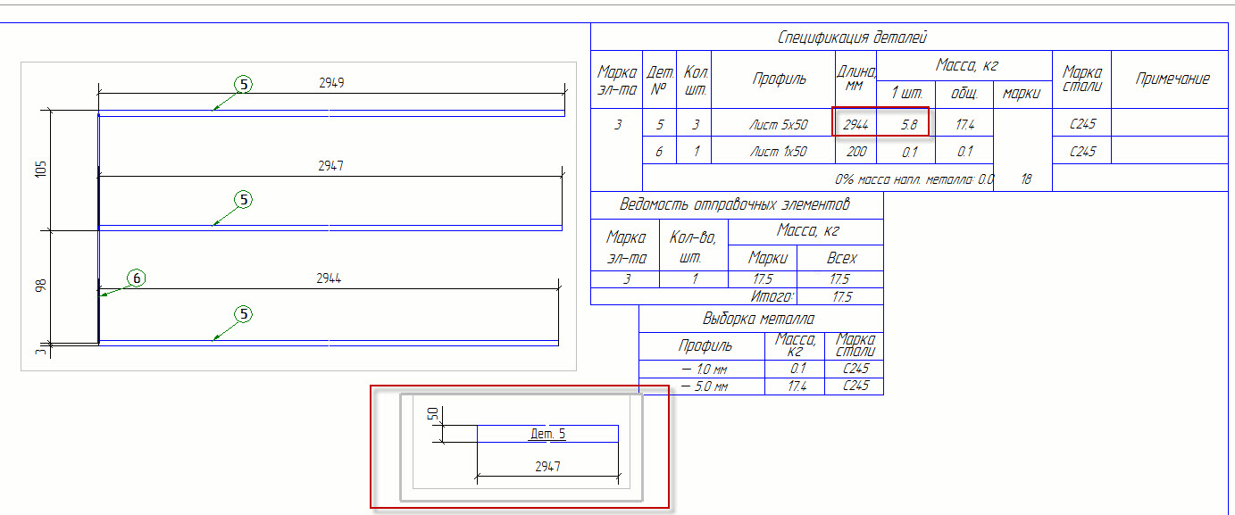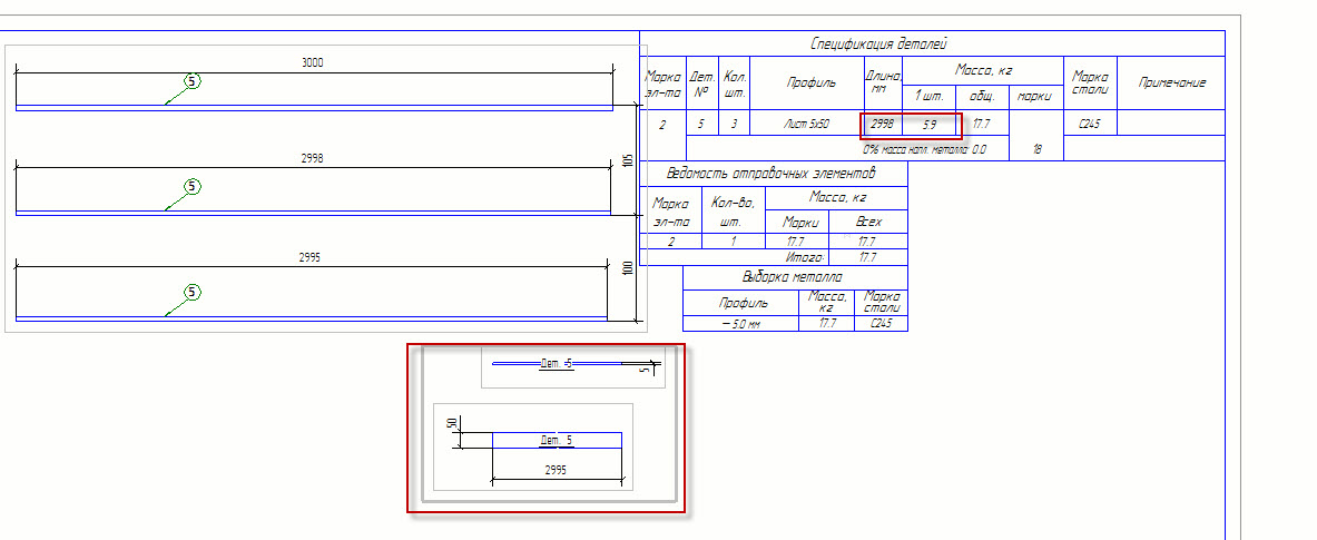 хочу продолжить тему. Поставил допуск 100, как видно в разных чертежах разные длины и массы у поз.5. Деталировку на чертеж выводит ту которую выбрал, т.е. тыкнул на поз. 5 длинной 2949 будет деталировка 2949, тыкнул на поз. длиной 2947 будет 2947,с массами так же, в другом чертеже никакой связи с предыдущими деталировками нет. Как с этим быть, понять и простить и делать допуск по минимому или как тогда проглатывает производство такую унификацию ? Мы уже пролетели с этим. (см скрин выше)