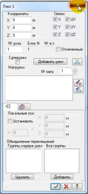 Шаг 2. В Лире создал файл с несколькими узлами Uzel.lir и сохранил его.