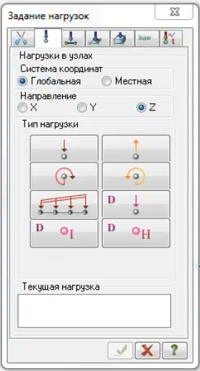 Теперь назначайте нагрузку на другой узел. Для этого выделите узел, добавить нагрузку на узел, глобальная координата Z и назначайте свое количество