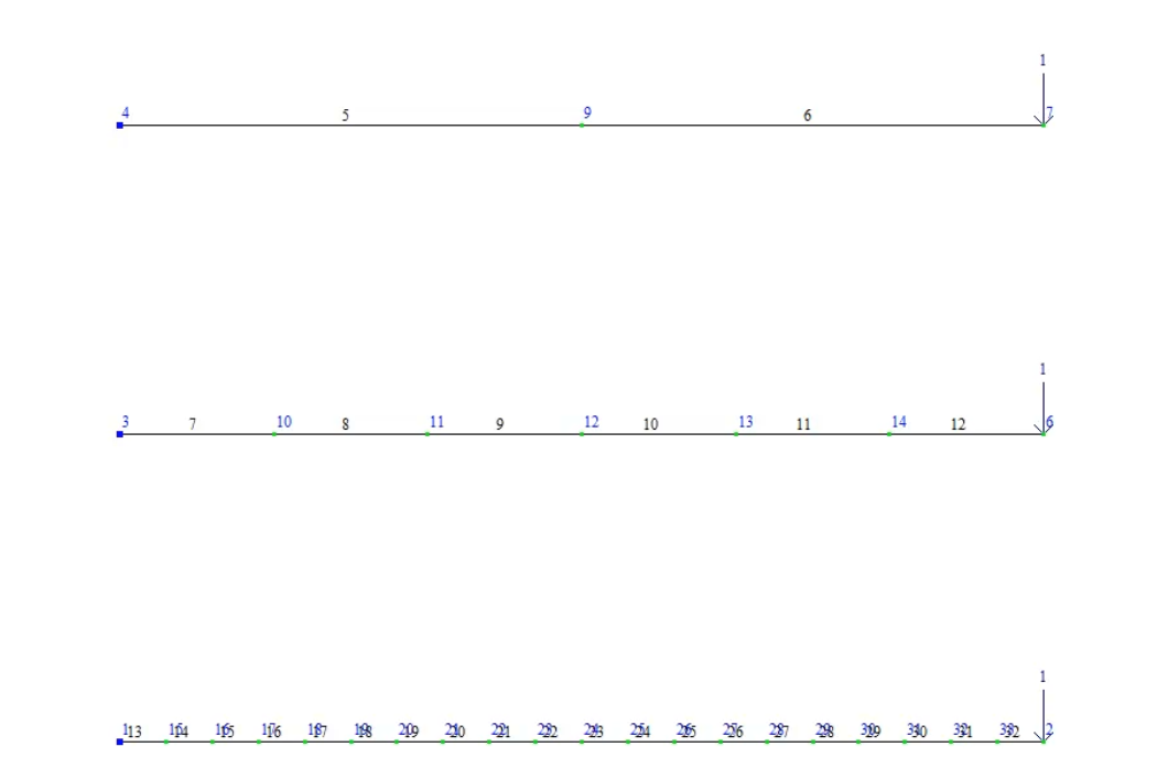 Я сделал 4 стержня одинаковые и разделил на разное количество частей