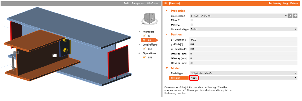 Как задать правильное место приложения усилий в IDEA StatiCa