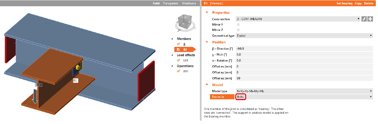 В данном примере поперечная сила должна прикладываться в позиции Болты (или в заданной Пози-ции, совпадающей с ЦТ болтового соединения).