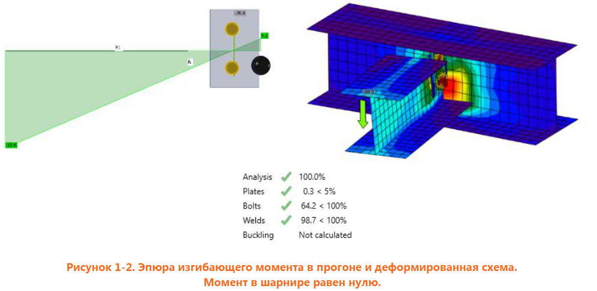 При моделировании шарнирных соединений необходимо прикладывать действующие внутренние уси-лия именно в том месте, где ожидается расположение шарнира (в этих местах не должно быть изгиба-ющего момента, который шарнир воспринять не может).