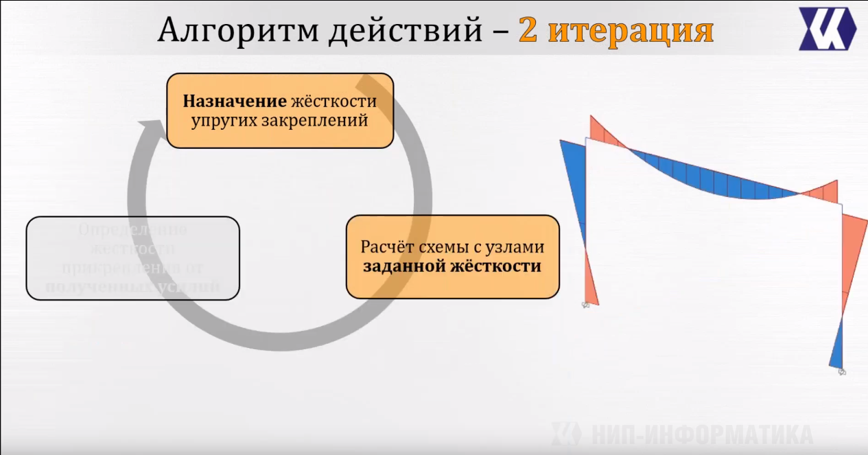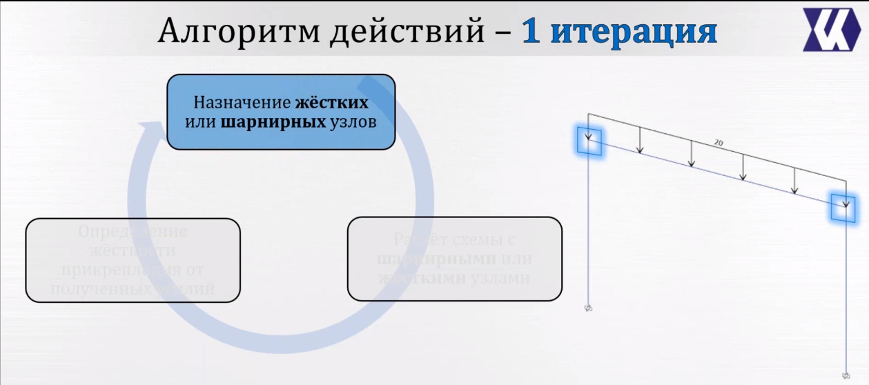 На второй итерации идем в свойство шарниров и задаем им угловую жесткость. Потом там высчитываем усилия, снова передаем в статику и так по кругу