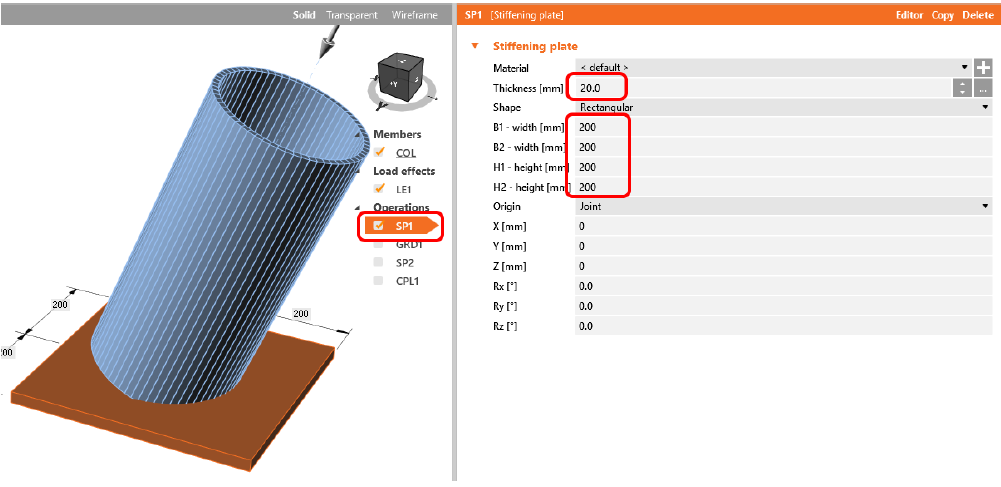 1. Добавляем элемент (трубу) и пластину усиления общего вида, она будет выступать в роли опорной пластины