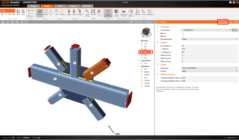 IDEA StatiCa Connection позволяет определить вращательную жёсткость прикрепления элементов к узлу. Как выстроить процесс наиболее эффективным образом, работая со сложными узлами в несколь-ких режимах расчёта? Здесь поможет группа ленты «Элементы проекта».