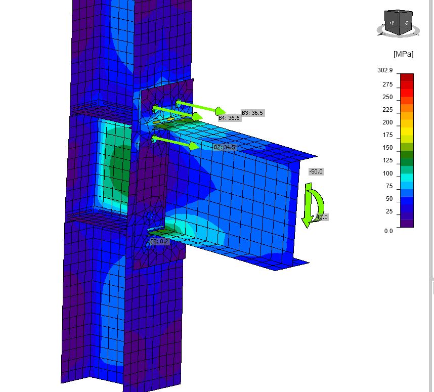 Учитывает ли IDEA Statica при расчете рычажный эффект, возникающий при деформациях пластин с болтовым соединением. Например во фланцевом соединении балки с колонной?