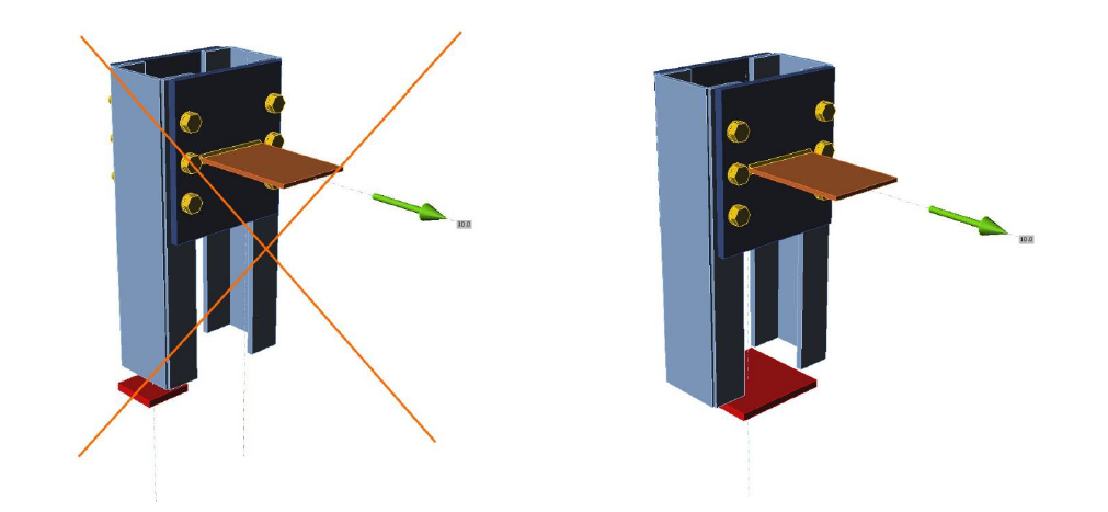 В IDEA StatiCa при расчёте закрепляется только один элемент. Если Вам нужно посчитать такой узел, как на рисунке ниже, для этого потребуется создать составное сечение (для колонны).