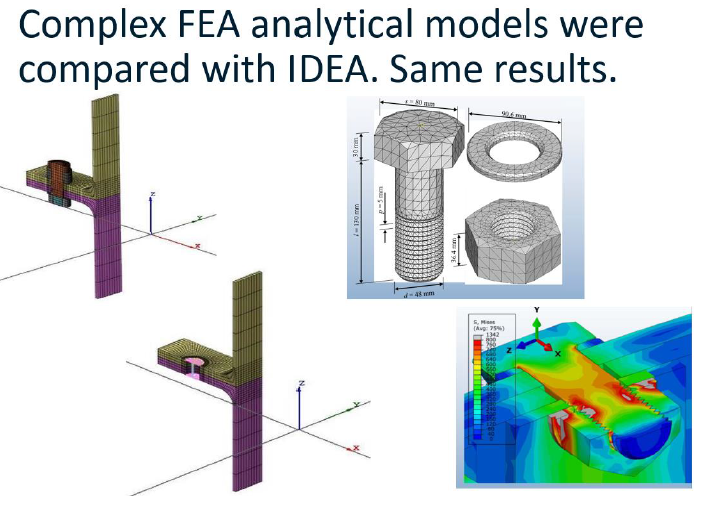 Второй этап был более трудоёмким и заключался в создании моделей в МКЭ программах и сравнении полученных результатов со значениями, вычисленными в IDEA StatiCa Connection за несколько минут.