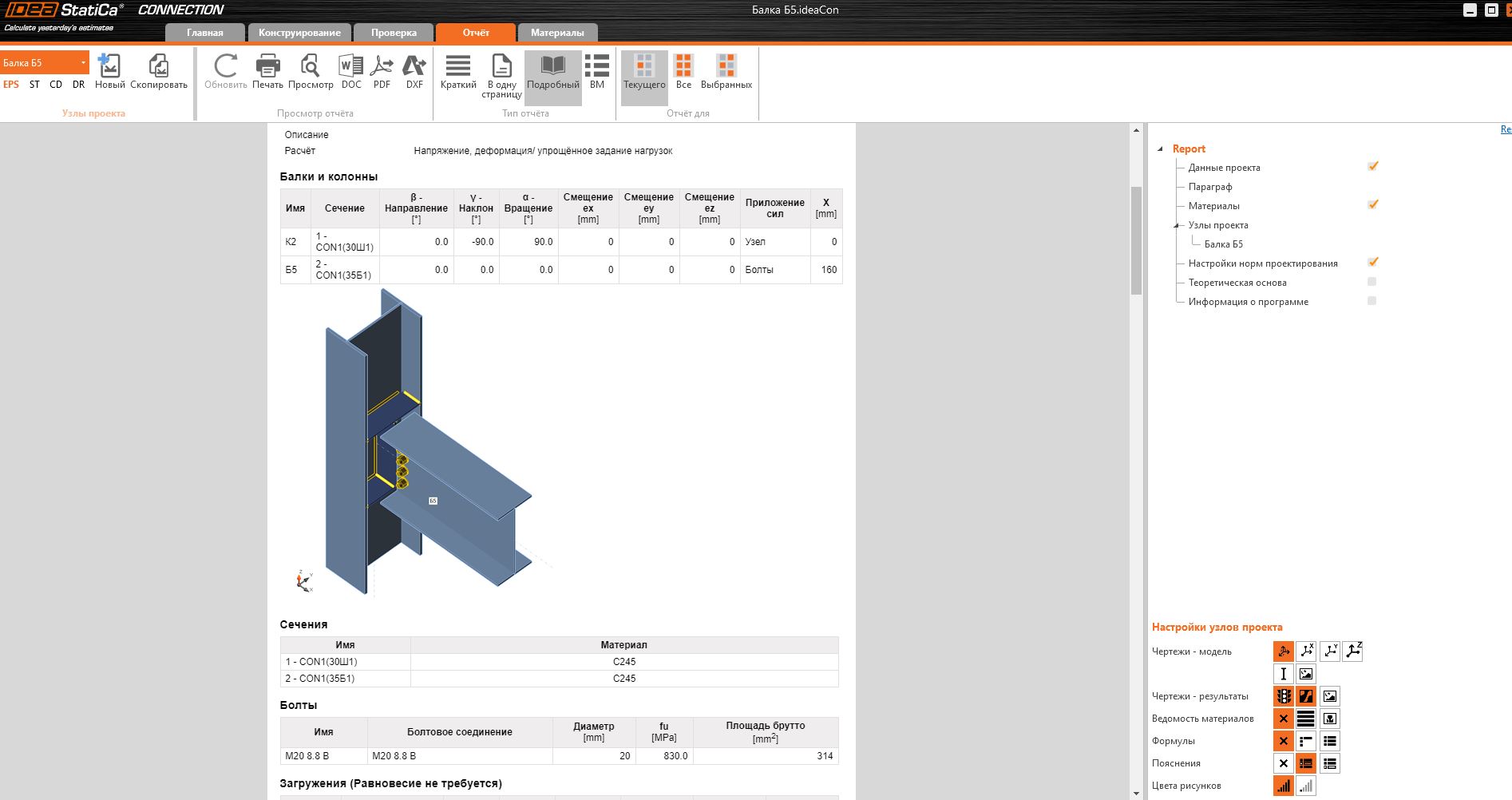 А как в IDEA Statica оформить результаты расчета? Есть ли такая возможность?