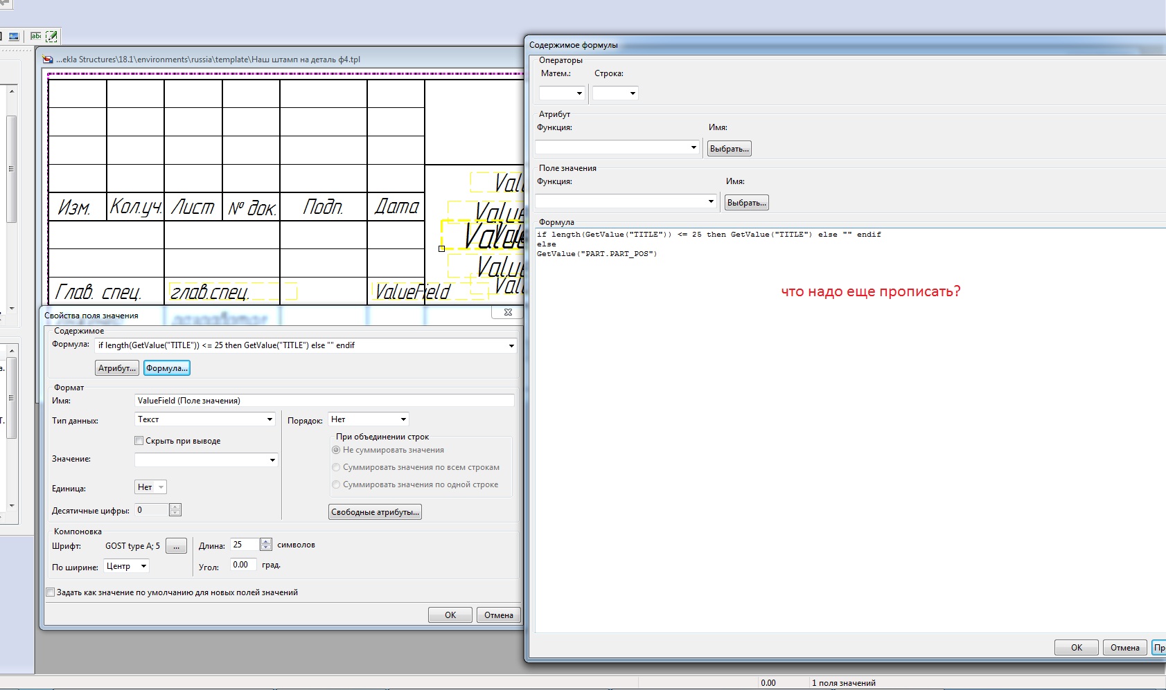 только не бейте ногами... в редакторе шаблонов самого штампа уже прописана формула, а добавить эту не получается...Таран Д. А. писал(а):GetValue("PART.PART_POS")