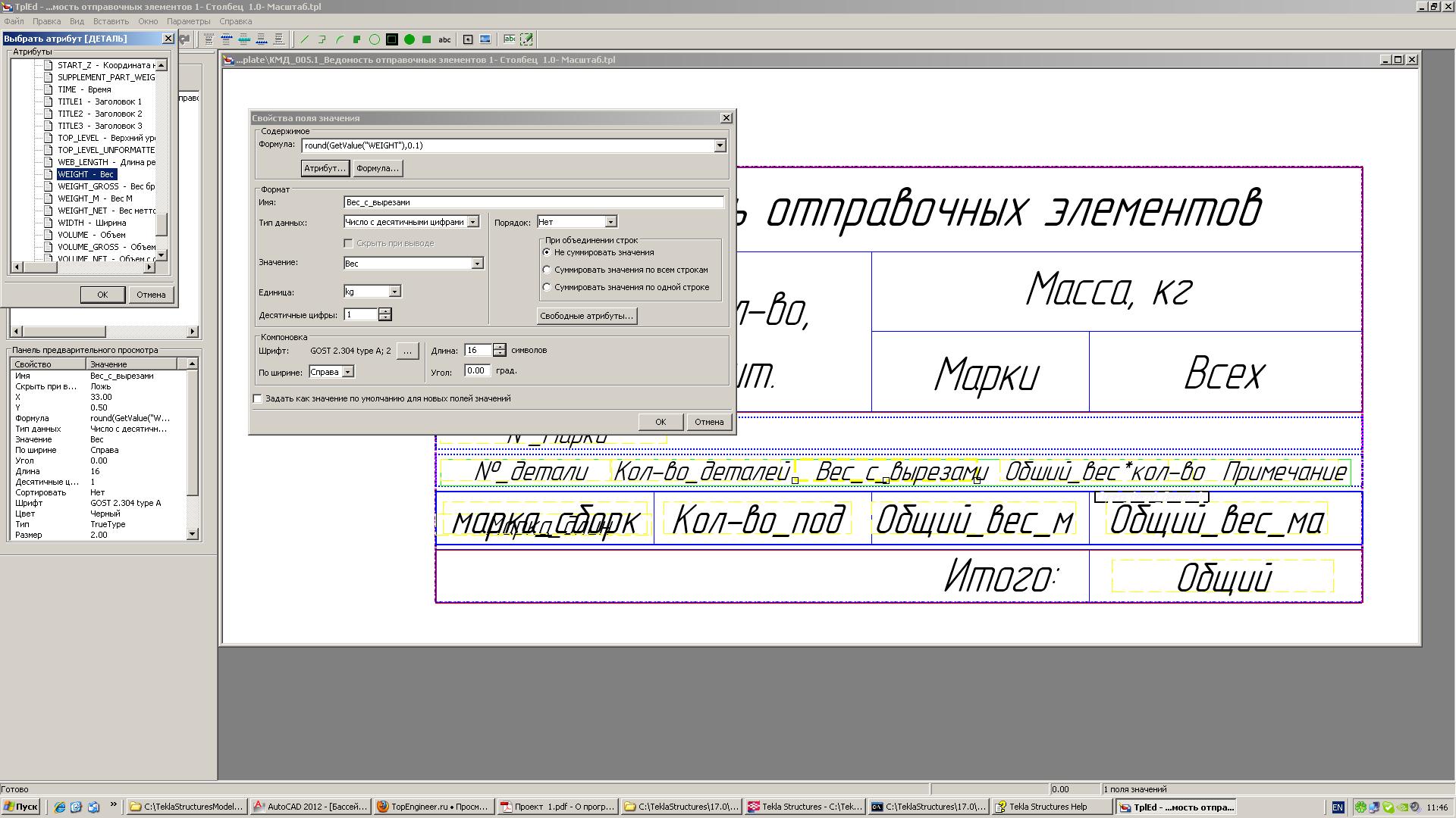 Судя по формулам и таблице делал ее я. Не знаю, что там у вас кто поменя, но при нуле раскроя и наплавки текст сам должен переписываться. Скорее всего для того чтоб учесть и раскрой и наплавку вам достаточно в свойствах проекта указать нужные проценты. ФАЙЛ-СВОЙСТВА ПРОЕКТА-ОПРЕДЕЛЕННЫЙ ПОЛЬЗОВАТЕЛЕМ АТРИБУТЫ