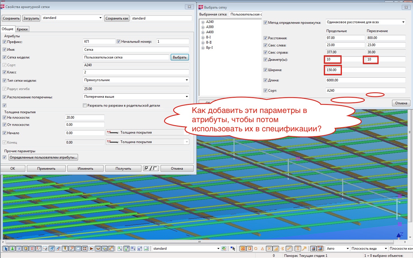 Теперь надо как-то внести данные из сетки в спецификацию, есть идеи как использовать параметры сетки (Рис.6)?
