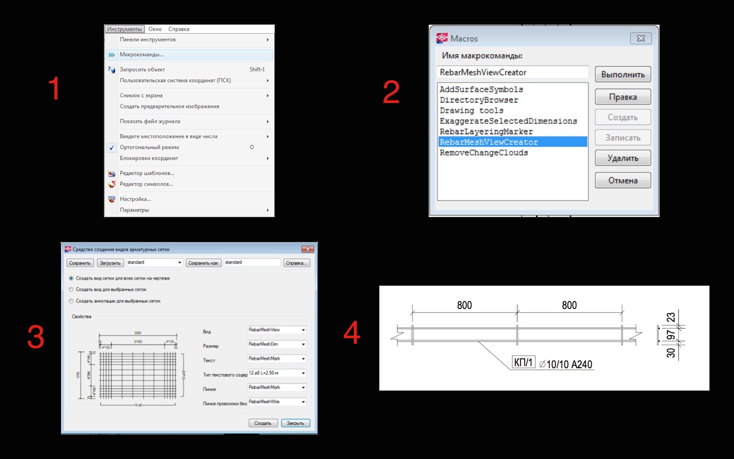 Пока удалось сделать чертеж сетки через макрос (Рис.5), в принципе сносно, за исключением выносок(((( как их настроить, не знаю.