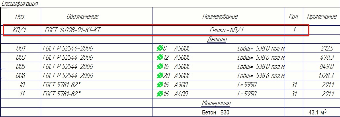 Позицию сборки попробуйте добавить. По одной картинке трудно судить.Константин писал(а): Доброго времени суток. Подскажите плз, сделал спецификацию на несколько монолитных железобетонных элементов, но почему-то не добавляется бетон на каждую сборку. Где ошибка? Спасибо