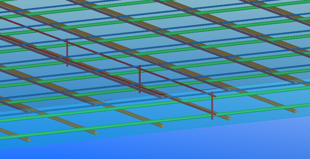 Доброго времени суток, уважаемые пользователи Tekla. Подскажите, можно ли штатными средствами обозначать таким образом зоны дополнительного армирования в плите, как в приведенном ниже примере. В зоне дополнительного армирования должен показываться только один замаркированный стержень, а сама зона обозначена сплошной или пунктирной линией по периметру и заштрихована.