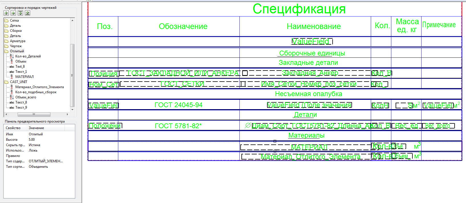 Тут надо копаться.Константин писал(а):Доброго времени суток. Подскажите плз, сделал спецификацию на несколько монолитных железобетонных элементов, но почему-то не добавляется бетон на каждую сборку. Где ошибка? Спасибо