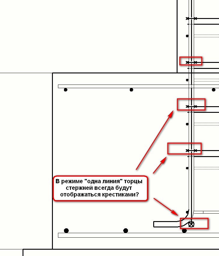 Вот из Русскевича два листика (п. 19.4.7). Так же и соответствии с ГОСТ 21.501-2011 СПДС (Правила выполнения рабочей документации архитектурных и конструктивных решений). Т.е. стержни обозначаются сплошной основной линией, попадающие в сечение- круглыми точками.Zezza писал(а):Это какое?Сплошной очень толстой линией?С крючками на концах, если надо начало и конец разных стержней?alstey писал(а):Как настроить правильное отображение согласно СПДС?