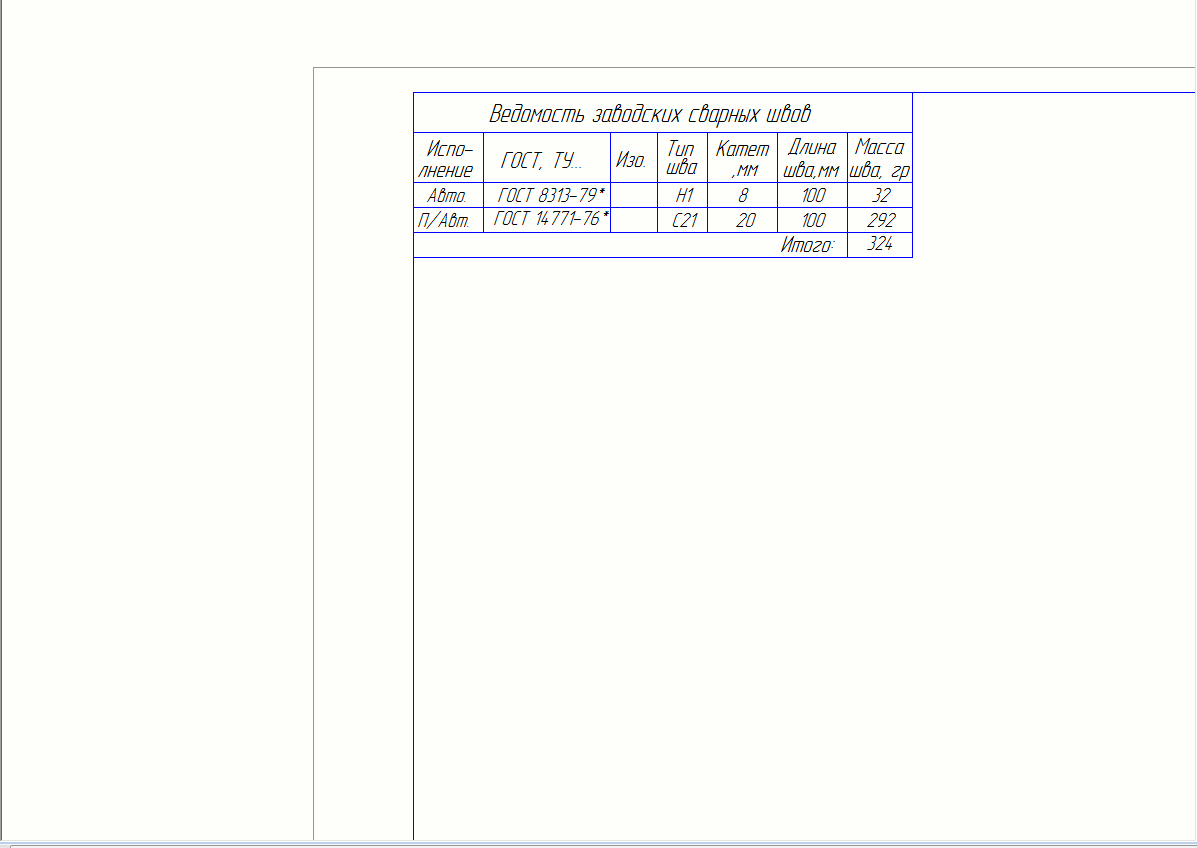 Нужно вывести на отдельном листе без чертежей следующую информацию: