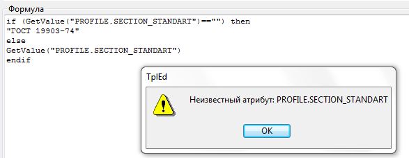 Пытаюсь разобраться в шаблонах, и никак не могу найти атрибут, выводящий ГОСТ профиля: PROFILE.SECTION_STANDART. При проверке формулы, возникает сообщение, что атрибут неизвестен. Откуда его можно вытащить, если в свойствах элемента данный пользовательский атрибут есть?
